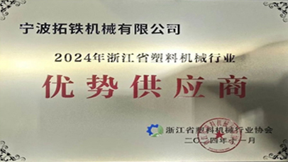• 喜報!拓鐵再獲浙江省塑機協(xié)會“優(yōu)勢供應(yīng)商”榮譽 浙江省塑料機械行業(yè)協(xié)會于2024年11月在深圳召開一屆二次會員代表大會暨二次理事會議,屆時公布了“優(yōu)勢供應(yīng)商”評選結(jié)果,并對獲獎單位頒發(fā)榮譽獎牌和證書。